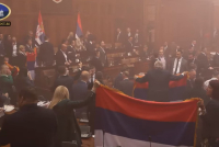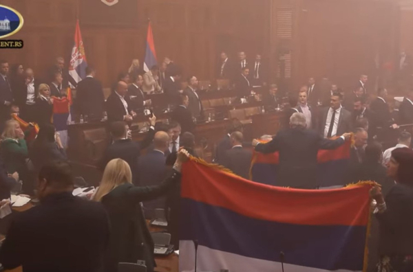 Poslanik koji duva u vuvuzelu je Vlada Jelić iz Novog Sada iz POKS-a, koji je optužen za zlostavljanje i uznemiravanje, prenose mediji.