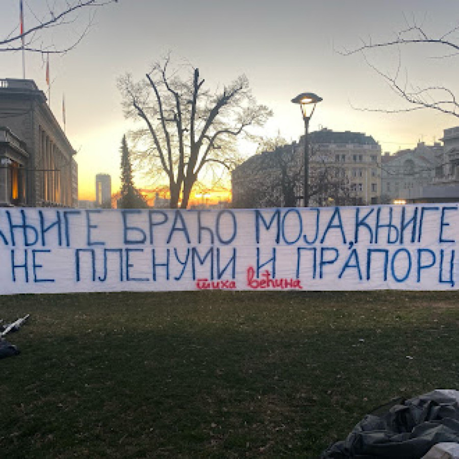 Istakli su transparent "Knjige, braćo moja, knjige, a ne plenumi i praporci"