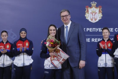 "Srbija nikada nije na Svetskim prvenstvima osvojila medalju i mislim da je vreme da nas obraduhete. U Parizu je Sara Ćirković delimično, a Natalija Šadrina brutalno pokradena i sada je vreme da se donese medalje", istakao je Vučić.