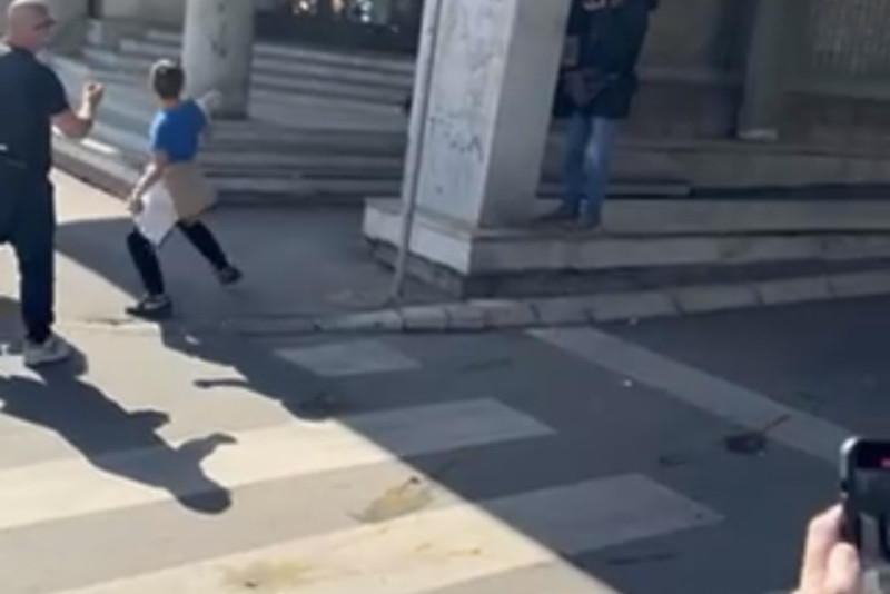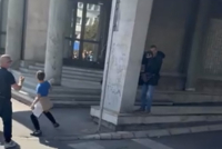 "Vaspitavanje" na delu: Otac daje detetu jaje da gađa skupstinu grada Novog Sada VIDEO