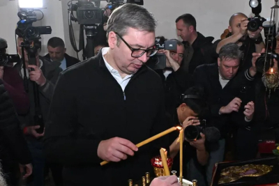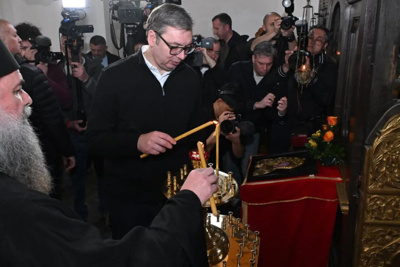 Predsednik Republike Srbije Aleksandar Vučić posetio je manastir Arhangela Gavrila u Pinosavi.