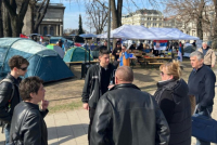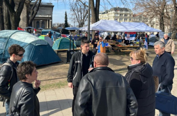 On je razgovarao sa studentima okupljenim u Pionirskom parku, koji se tamo nalaze već nekoliko dana i koji javno iskazuju svoj zahtev da se vrate svojim studijama i nastave da uče.