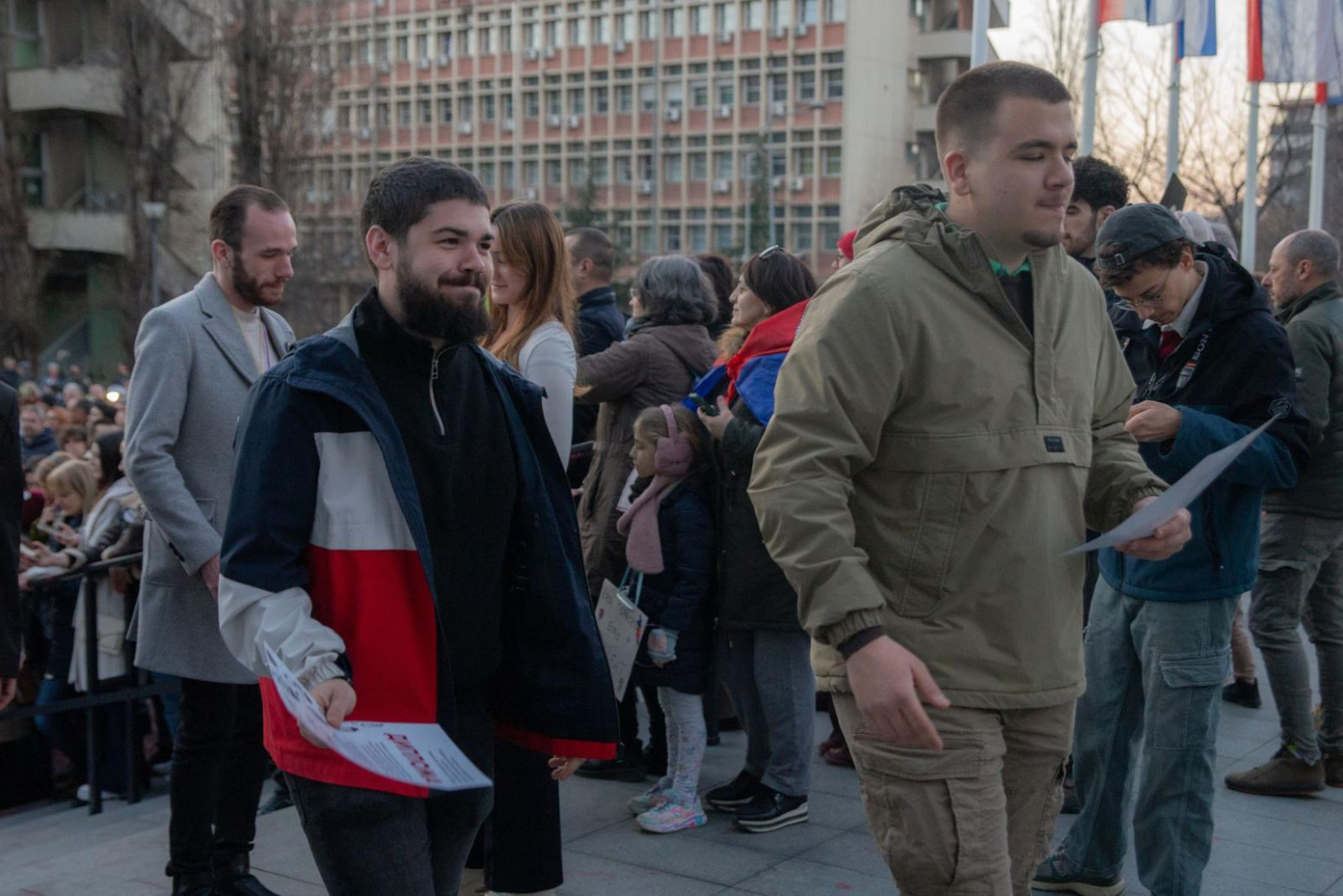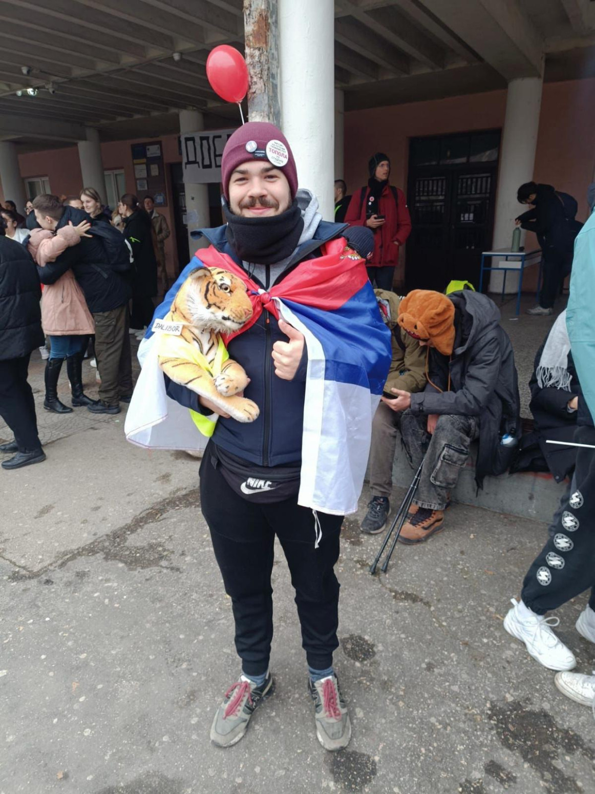 "Od rušenja nadstrešnice, od početka protesta, bio sam jedan od najaktivnijih demonstranata. Bio sam svuda. U Novom Sadu, u Nišu, u Kragujevcu. Verovao sam u to da država sprovodi nasilje nad nama. Bio ubeđen da smo vesnici demokratije i dijaloga u nekoj novoj Srbiji. Međutim, kada su neke od mojih kolega počeli otvoreno da se bave dnevnom politikom, formiranjem ovakvih i onakvih vlada, a posebno kada sam sinoć video napad na ove studente u Pionirskom parku, u meni se sve okrenulo. Biću sa njima i borićemo se zajedno za Srbiju, ali i za znanje i učenje", rekao je Dalibor.