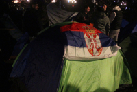 Bliceve su držali uperene u nebo 10 minuta. Tokom performansa su skandirali "Srbija" i "Kosovo je srce Srbije". Studenti koji hoće da uče i veterani su ranije danas tokom dana razvukli srpsku trobojku dugačku 30 metara u Pionirskom parku.