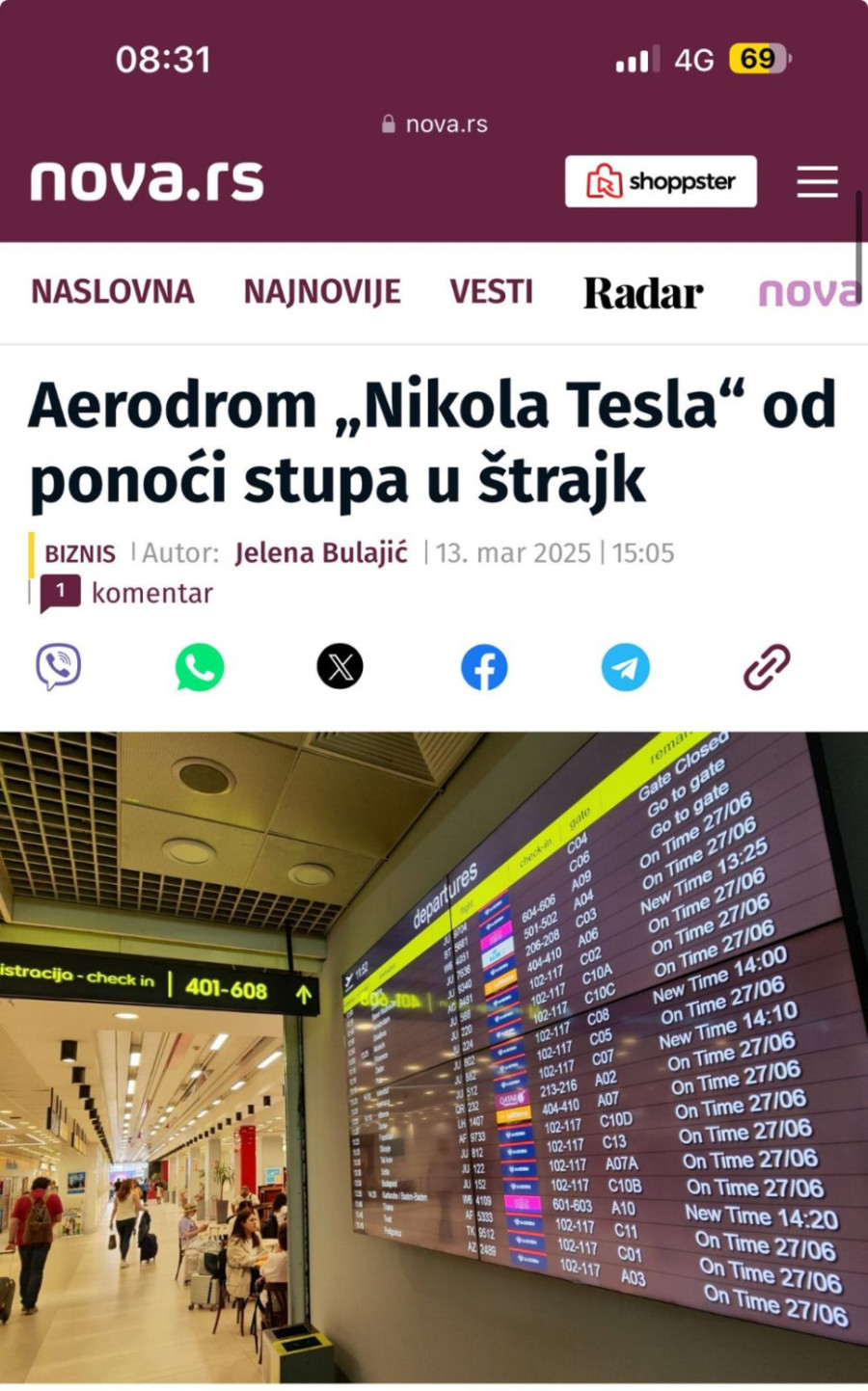 Džaba Šolakova kampanja rušenja države: Aerodrom "Nikola Tesla" radi kao sat FOTO