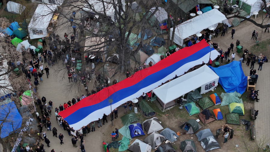 Veličanstven prizor: Studenti koji hoće da uče razvili su srpsku trobojku dugačku 30 metara FOTO/VIDEO