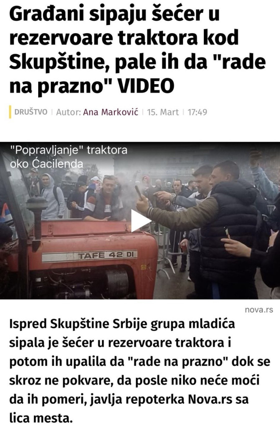 Antisrpski mediji priznali: Studenti uništavaju parkirane traktore, sipaju šećer u rezervoare i uništavaju tuđu imovinu
