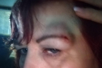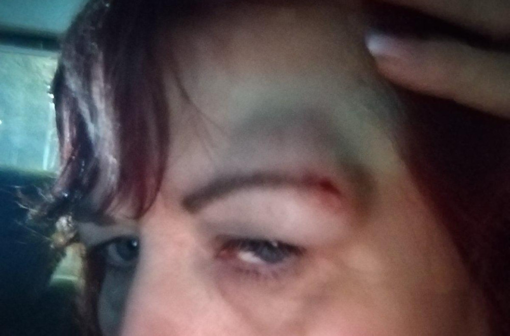 Ona je pogođena kamenicom, i zadobila je težu povredu, što se može videti na fotografiji.