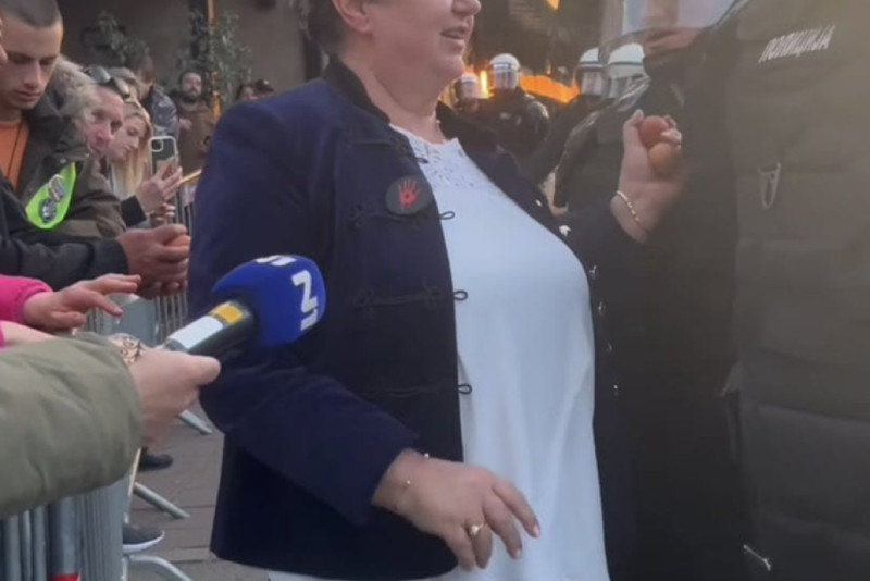 Dekanka Filozofskog fakulteta u Nišu Natalija Jovanović uslikana je danas u Nišu sa jajima u ruci, prenose mediji.