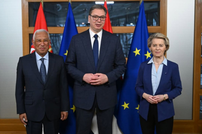 Predsednik Srbije Aleksandar Vučić sastao se u Briselu sa predsednikom Evropskog saveta Antoniom Koštom i predsednicom Evropske komisije Ursulom fon der Lajen.