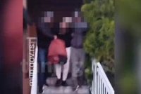 Na snimku se vidi kako inspektori i pripadnici Interventne jedinice privode dvojicu osumnjičenih. Pripadnici UKP i PU Novi Sad i PU za grad Beograd u saradnji sa Osnovnim javnim tužilaštvom u Novom Sadu.