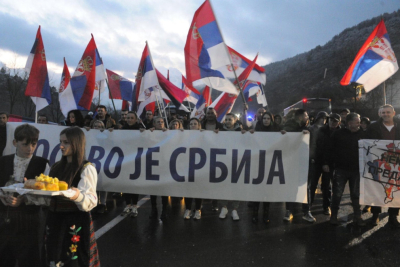 Oko 200 Srba iz svih krajeva AP Kosova i Metohije koji su krenuli juče pešice ka Beogradu, kako bi u subotu 12. aprila stigli na veliki narodni skup koji se održava u srpskoj prestonici, stigli su sinoć do mesta Ušće u Kraljevu.