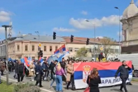 Studenti su danas uz srpske trobojke koje se vijore i pesmu Baje Malog Knindže, "Pevaj Srbijo!", dočekani u Staroj Pazovi.