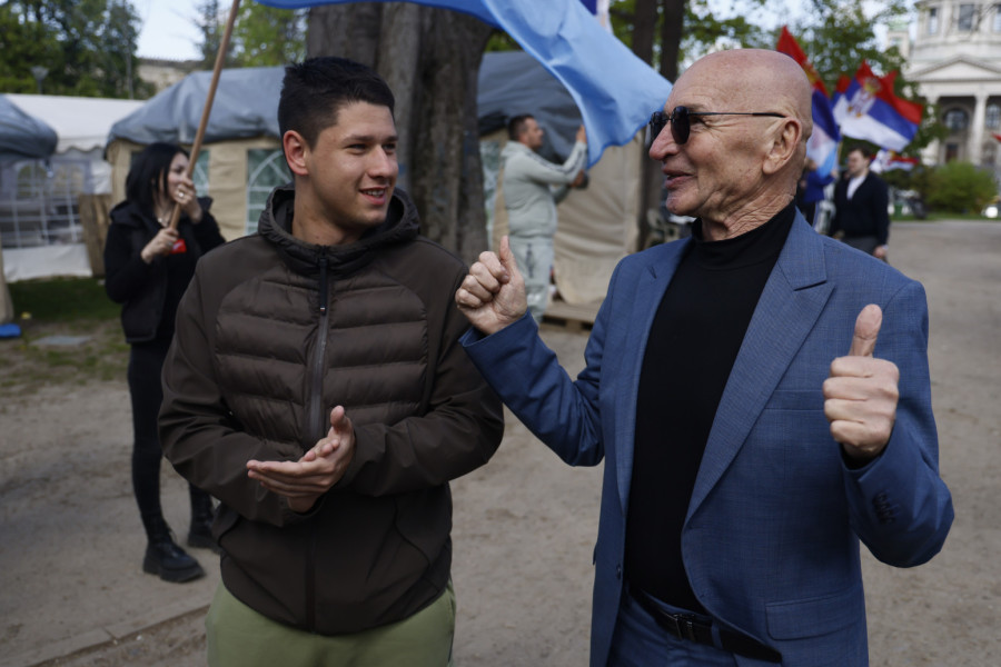 Učesnik bitke na Košarama, penzionisani potpukovnik Vojske Jugoslavije i zamenik komandanta 53. graničnog bataljona Dragutin Dimčevski, posetio je danas studente koji žele da uče i koji su od 6. marta u Pionirskom parku.