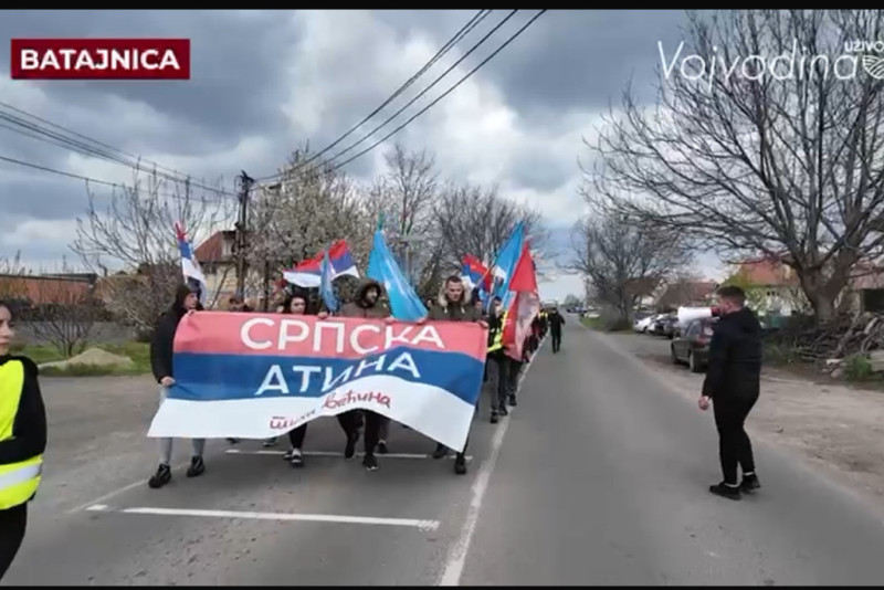 Studenti koji su iz Novog Sada peške krenuli za Beograd, gde će prisustvovati najvećem narodnom skupu "Ne damo Srbiju", stigli su u Batajnicu.