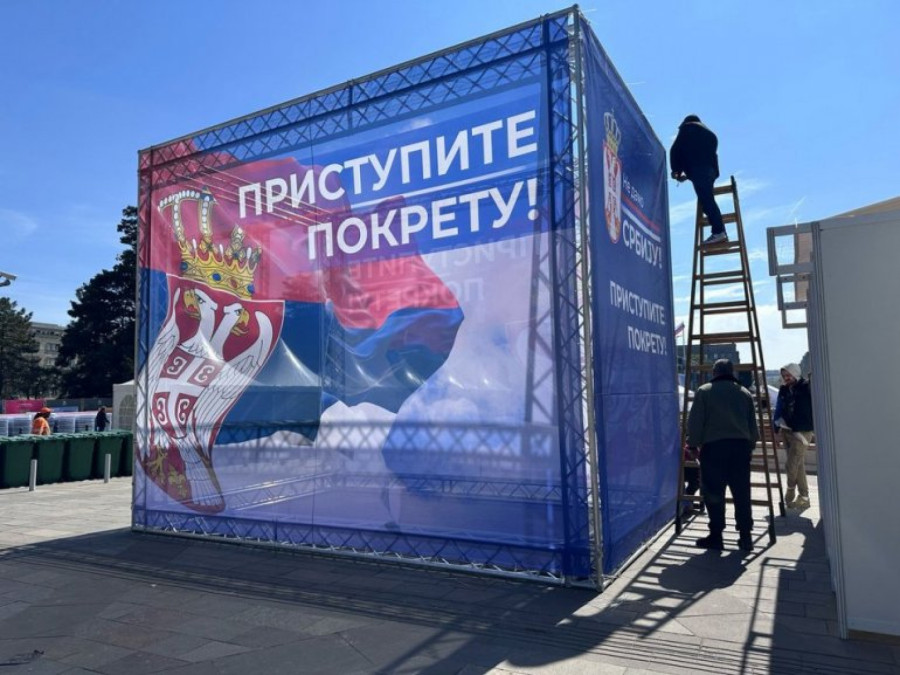 Građani u redu čekaju ispred štanda za pristupanje pokretu ne bi li na taj način podržali ideju čiji je jedan od inicijatora i predsednik Srbije Aleksandar Vučić.c