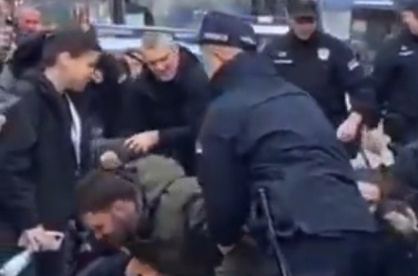 Ovde policajac lepo moli blokadaere i kaže im "mi smo vama sinoć organizovali da sigurno i bezbedno dodjete, ovo je njihovo"...