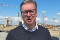 "Uprkos svim izazovima, uprkos tome što samo čujete buku, viku, dreku, teške reči od onih koji bi da sruše Srbiju, došao sam da vam pokažem koliko smo napredovali na Ekspu koji moramo da pripremimo do 1. decembra 2026. godine. Ovo je centralni deo budućeg Sajma i EKSPA, ovo što ogledate levo je Nacionalni paviljon, a iza mene zgrade koje su iznikle, tu su stambene zgrade. Sa desne strane je stadion, napreduje pruga od aerodroma do EKSPA je 7 kilometara, ukupno 16 km pruge u ovom delu, spajaće i Prokop i Novi Beograd sa aerodromom, ali i sa Obrenovcem i EKSPOM. Uspevamo da izguramo nekako. Neverovatno je, dugo nisam bio, nekoliko nedelja i mnogo sam srećan što na Veliku subotu vredno rade i na današnji dan. Videćemo nešto makar i kuvanih jaja nešto za Vaskrs da donesemo. Zapamtite moje reči, niko i nikada ne može da zaustavi i pobedi Srbiju", rekao je Vučić.