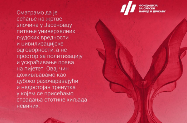 Fondacija "Za srpski narod i državu": Sećanje nije politilki čin – to je ljudska obaveza