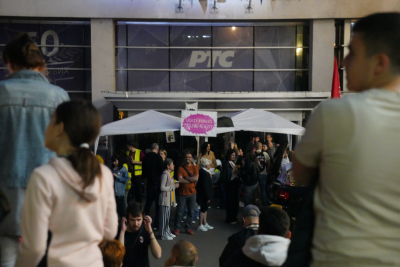 Blokirani su glavni i sporedni ulazi u zgradu javnog servisa, a za saobraćaj su i dalje blokirane ulice oko RTS-a.