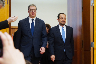 Predsednik Srbije Aleksandar Vučić ugostio je predsednika Republike Kipar Nikosa Hristodulidisa, koji do subote boravi u radnoj poseti Srbiji.