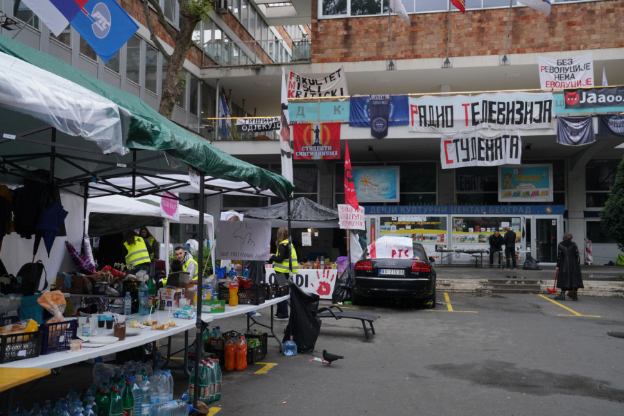 Studenti i građani nastavili su bespravnu blokadu ulaza u objekte Radio-televizije Srbije u Takovskoj i Aberdarevoj ulici, kao i studija na Košutnjaku, čime onemogućavaju zaposlenima da dođu na svoja radna mesta.