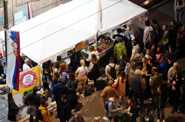 Buka se kasnije smanjila, a trenutno je u Takovskoj okupljen manji broj studenata u blokadi nego ranijih noći.
