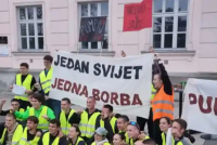 Srpske studente koji trče do Brisela sinoć u Hrvatskoj dočekala grupa ljudi, da pozdravi "njihovu borbu protiv režima", prenose mediji.