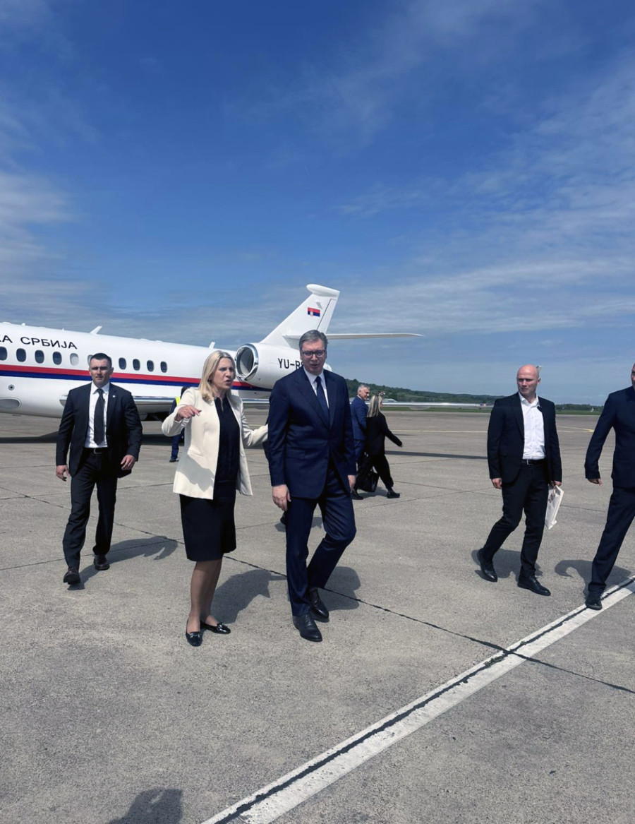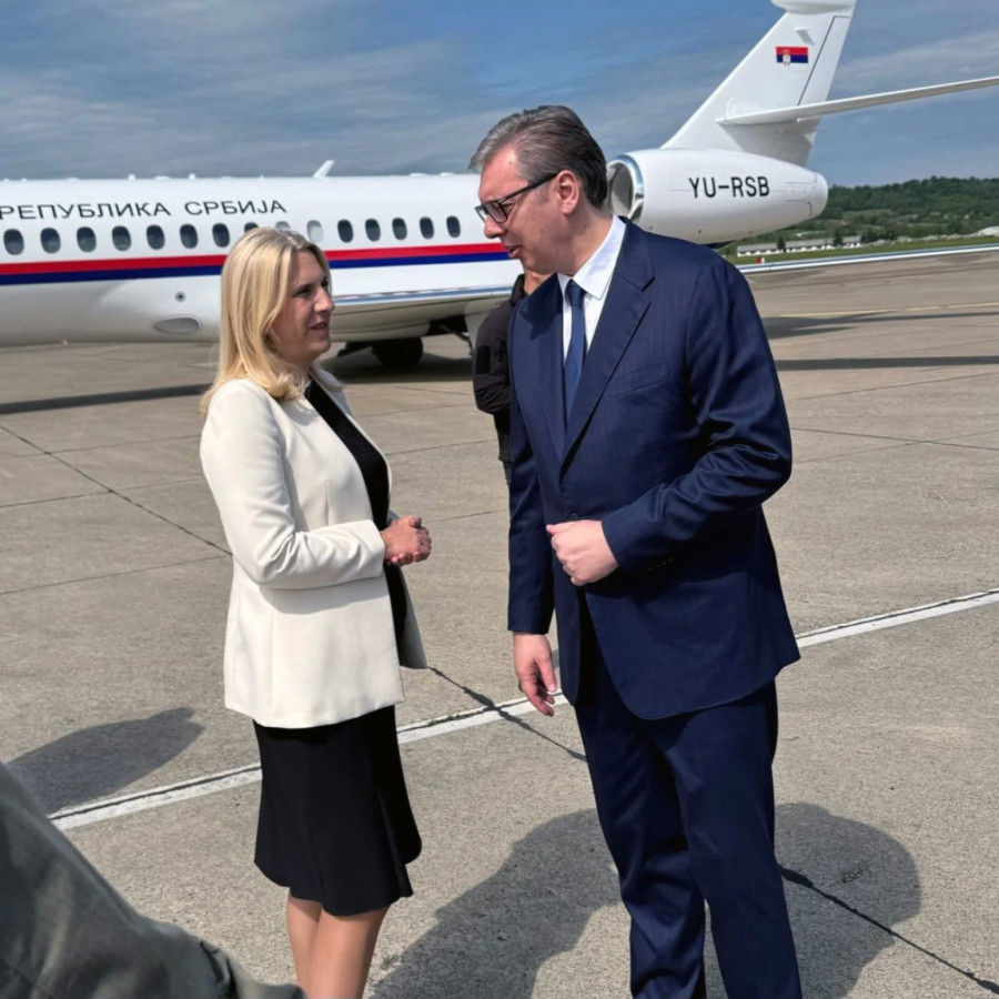 Predsednik Srbije Aleksandar Vučić stigao je u Banjaluku, gde ga je dočekala srpska članica i predsedavajuća Predsedništva BiH Željka Cvijanović.