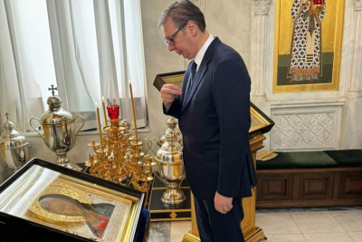 "Preneo sam pozdrave patrijarha Porfirija. Za mene velika čast, ovo je još jedna važna stvar u razvoju naših odnosa", rekao je Vučić.