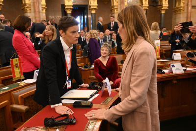 Brnabić se pri dolasku u mađarski parlament srdačno pozdravila sa predsednicom Evropskog parlamenta Robertom Mecolom, sa kojom je provela nekoliko minuta u prijateljskom razgovoru.
