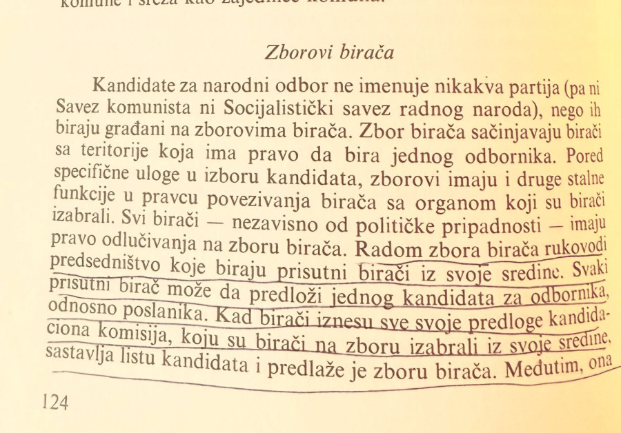 "Ovakav način kandidovanja za narodne odbore komuna već je dosad odigrao veoma veliku ulogu u formiranju nove društvene svesti. Ljudi se tu ne orjentišu mehanički, prema opštoj partijskoj pripadnosti, nego prema kandidatu kao ličnosti".