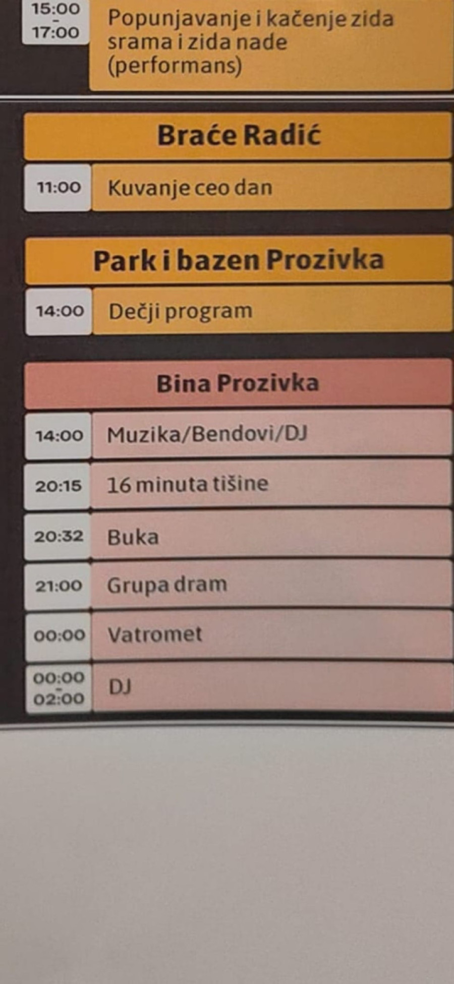 Kako može da se vidi iz plana, blokaderi su organizovali muziku i bendove, pa tek onda tišinu, a sve se završava vatrometom i DJ-om.