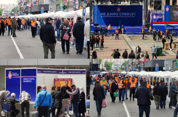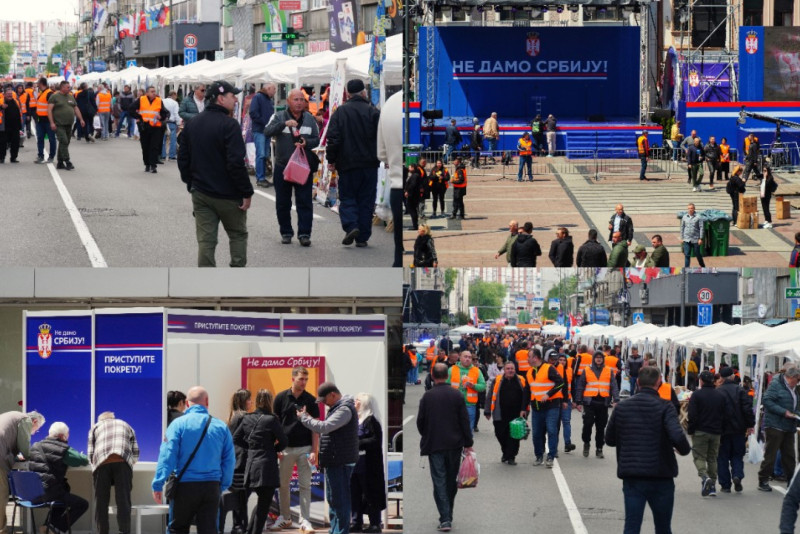 U centru Niša, na Trgu kralja Milana, sve je spremno za današnji centralni skup svenarodnog sabora na kome će se obratiti predsednik Srbije Aleksandar Vučić, a građani su već počeli da se okupljaju.