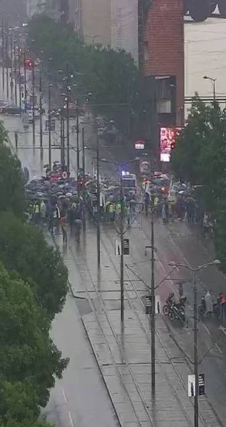 Zbog blokadera za saobraćaj su bile zatvorene Ulica Kneza Miloša i Nemanjina ulica do Savskog trga.