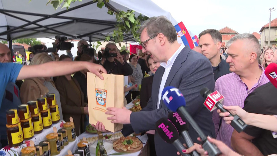 Predsednik Srbije stigao je u mesto Jelašnica. Tamo su ga ponudili sa ribljim uštipcima i ribljim čvarcima.