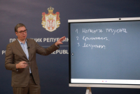 "Ja ne mislim da je to tema koja deli narod. Ja mislim da Kosovo i Metohija moraju da budu Srbija i da to mora da bude jasna poruka svakoga od nas. Nisu spremni ni da se izjasne po pitanju Srebrenice, da li je to bio genocid ili strašan zločin, kako ne bi naljutili svoje vitalne sponzore", izjavio je Vučić.
