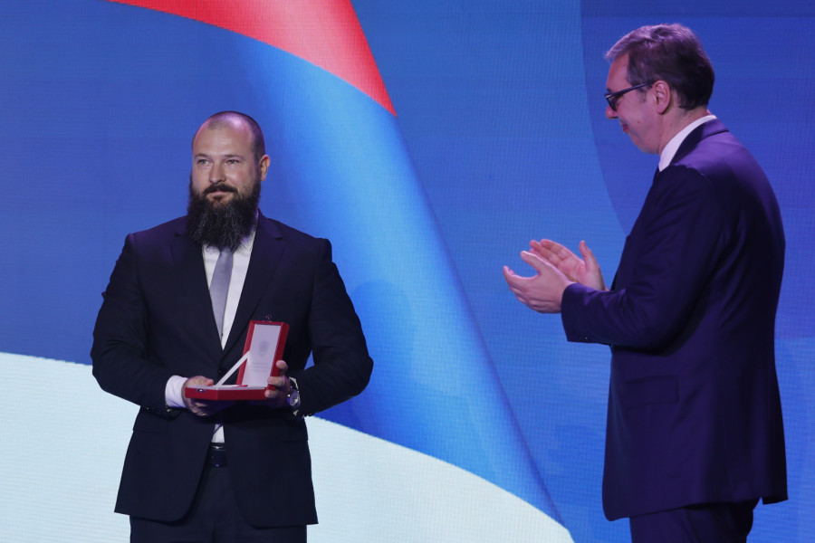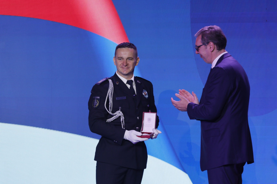 Predsednik Srbije Aleksandar Vučić uručio je zlatne medalje za hrabrost, zasluge i posvećenost službi, nakon čega se obratio prisutnima.
