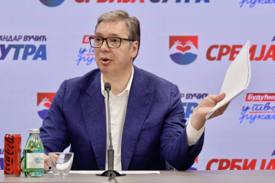 "Na svih 29 zapisnika iz Kosjerića su potpisi naših političkih protivnika. Sa njihovim potpisima, u Kosjeriću je tesno, ali pobedila lista SNS", rekao je Vučić.