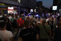 Bilo je i koškanja i dobacivanja, ali su pripadnici policije razdvojili dve grupe nakon čega su blokaderi otišli na centralni trg. Ispred sedišta SNS pristalice te stranke su palile baklje i proslavljale pobedu na izborima.