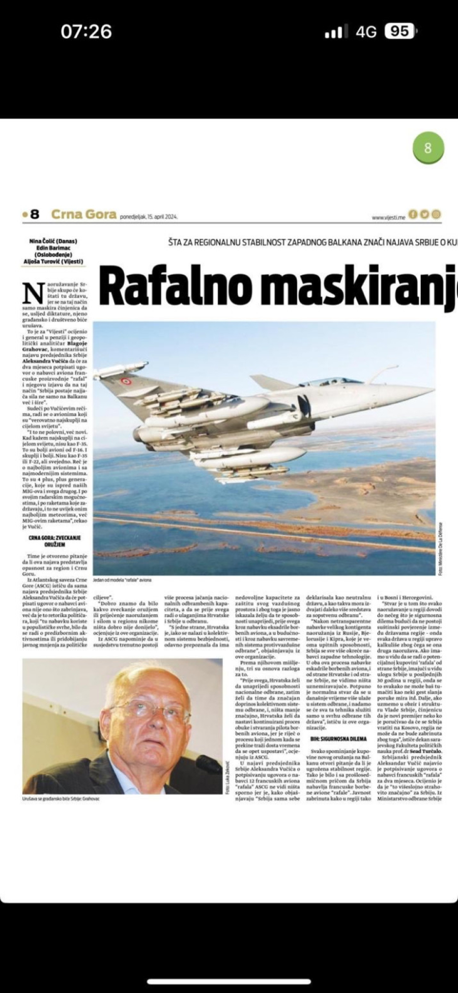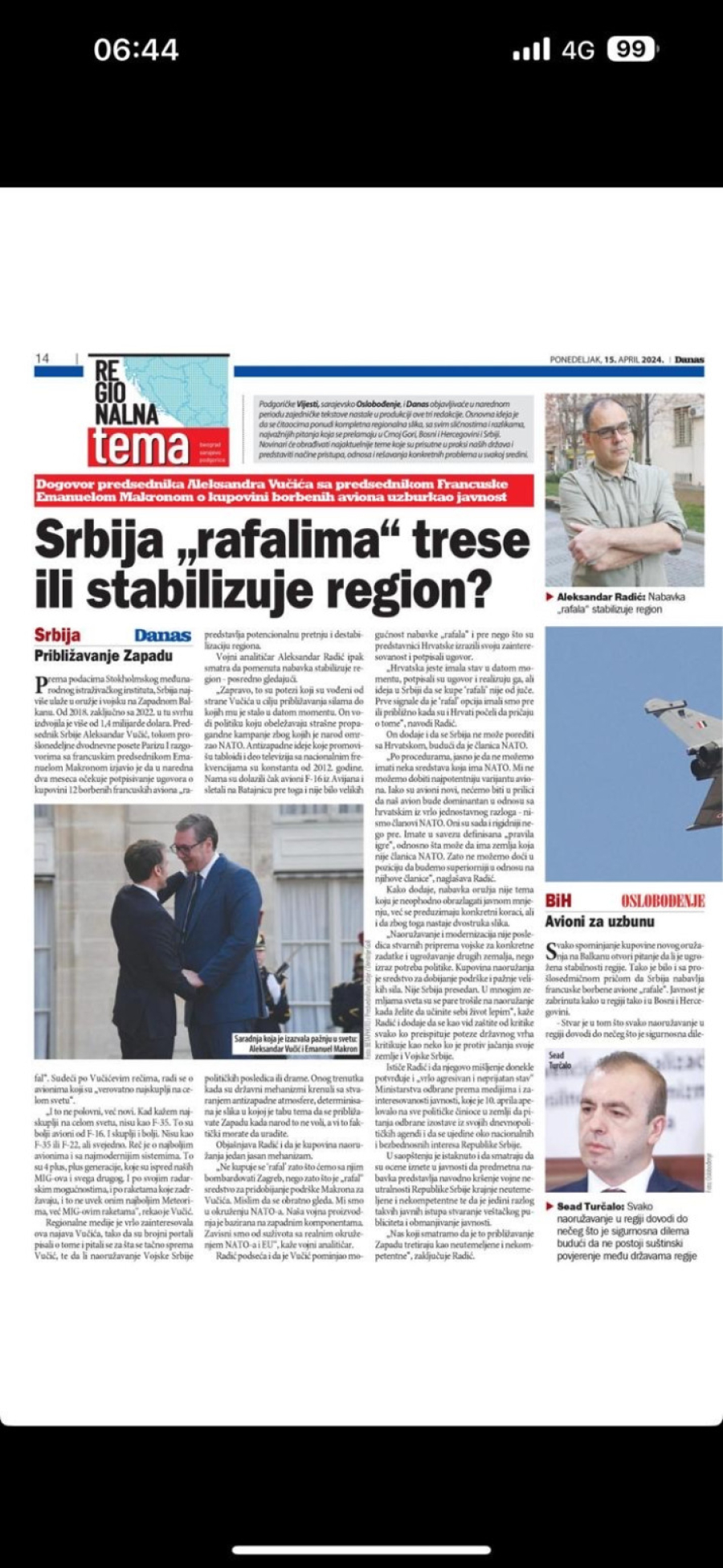 U tim tekstovima pitaju - "Trese li Vučić Rafalima region, ili ce Rafali doneti stabilnost"?, navodi Alo.