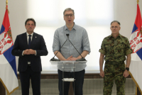 Predsednik Republike Srbije Aleksandar Vučić prisustvovao je sednici proširenog kolegijuma načelnika Generalštaba, nakon koje se obraća javnosti na konferenciji za štampu.