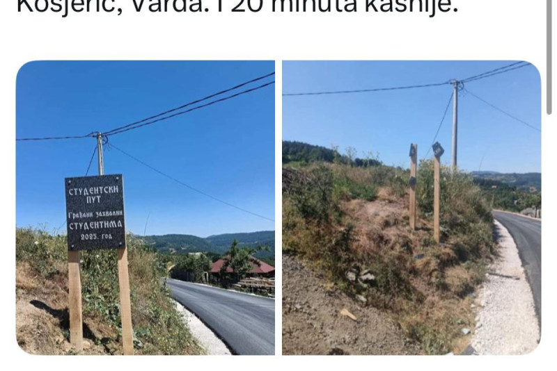 "Ova ulica nema nikakve veze sa blokaderima, koji su do skoro pričali kako neće biti urađena, već je zahvaljujući državi napravljena. Tabla im očigledno nije bila dovoljna da privuku pažnju i uznemiravaju meštane Varde, pa su odlučili da rašire transparent posred ulice pod nazivom 'Studentski put, pumpaj, pumpaj'".