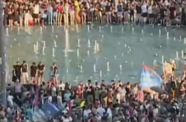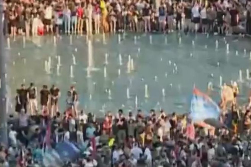 Sramno ponašanje: Blokaderi stoje u fontani tokom odavanja pošte stradalima FOTO/VIDEO