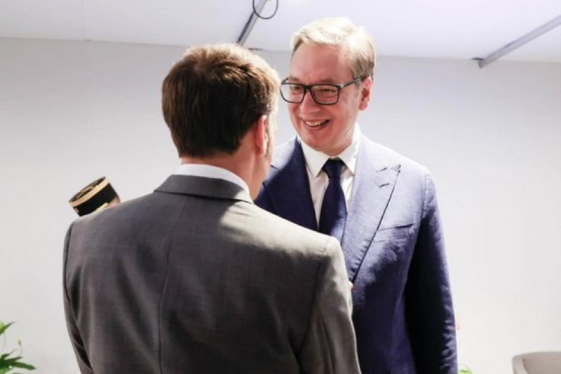 Razgovarali smo o daljem unapređenju bilateralne saradnje, evropskom putu Srbije i situaciji u Evropi i svetu. Upoznao sam predsednika Makrona i sa političkim dešavanjima u Srbiji", navedeno je u Instagram objavi.