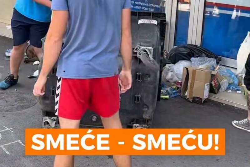 Blokaderi u Novom Sadu ruinirali SNS prostorije: Ispred vrata pobacano smeće i kontejneri FOTO