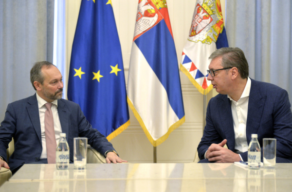 Predsednik Srbije Aleksandar Vučić primio je danas u oproštajnu posetu šefa Delegacije Evropske unije u Srbiji Emanuelea Žiofrea.