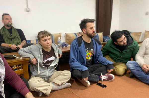 Kako navodi ovaj portal, Tunbergova se, u Beogradu priključila protestima dela opozicije i blokadera. Na društvenim mrežama objavljene su fotografije na kojima se Tunberg drži za ruke s nekoliko lokalnih aktivista ispred zgrade Narodne skupštine, uz transparente na engleskom i srpskom jeziku.