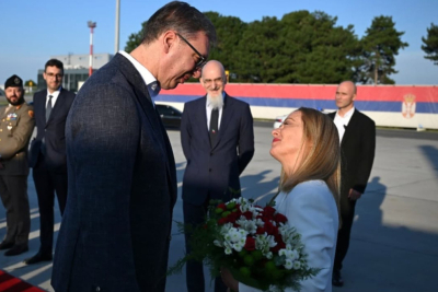 Predsednik Republike Srbije Aleksandar Vučić ugostio je predsednicu Vlade Republike Italije Đorđu Meloni, koja boravi u radnoj poseti Republici Srbiji.
