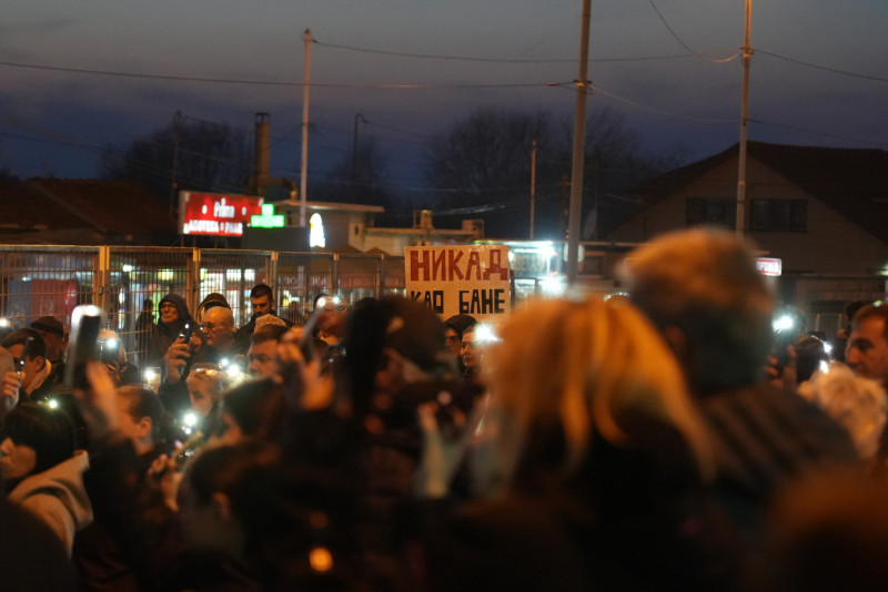 "Sinoć oko 19 časova došlo je do neprijavljenog javnog okupljanja u Zemunu, ulica Avijatičarski trg, a zatim i do šetnje do prostorija mesnog odbora Srpske napredne stranke u ulici Džona Kenedija.